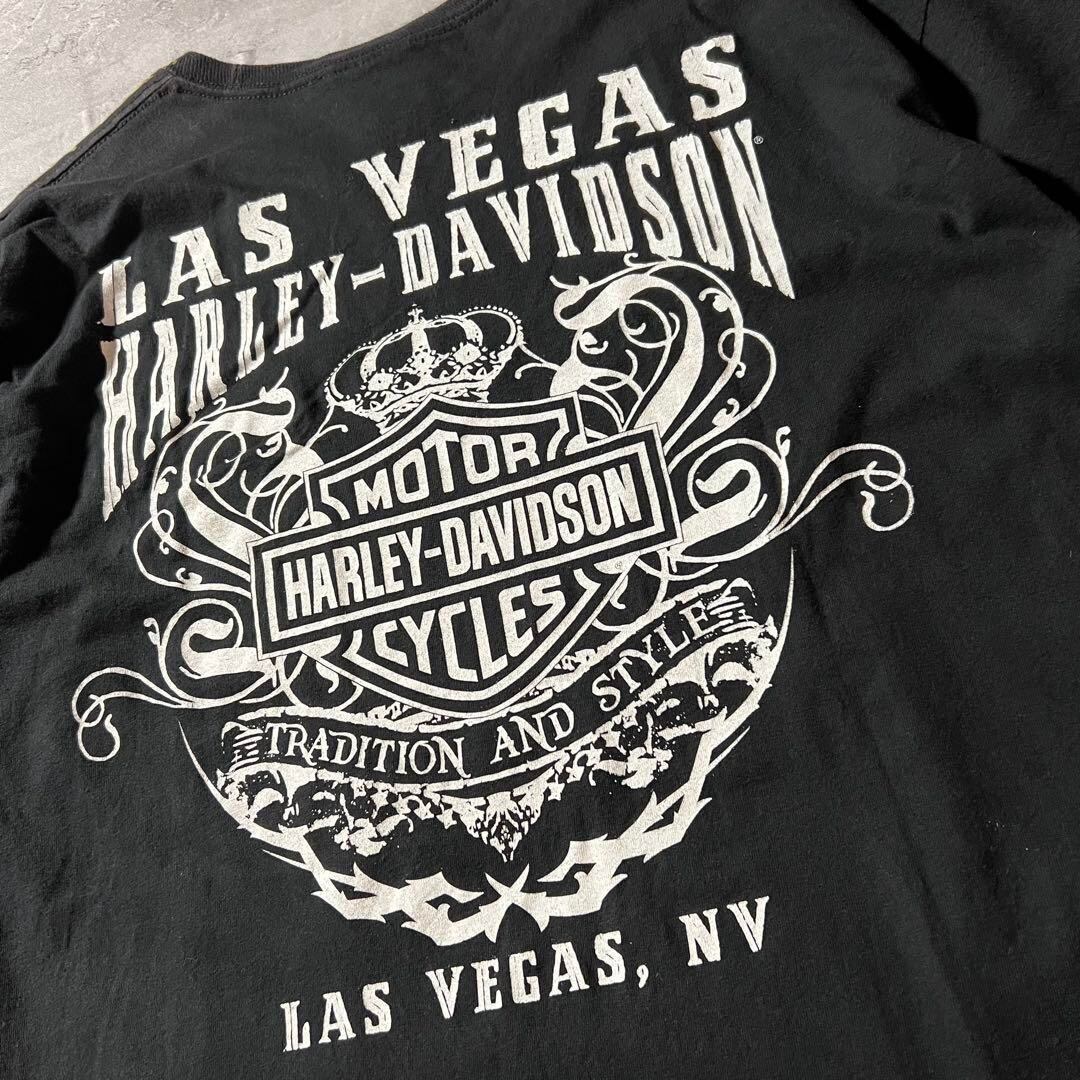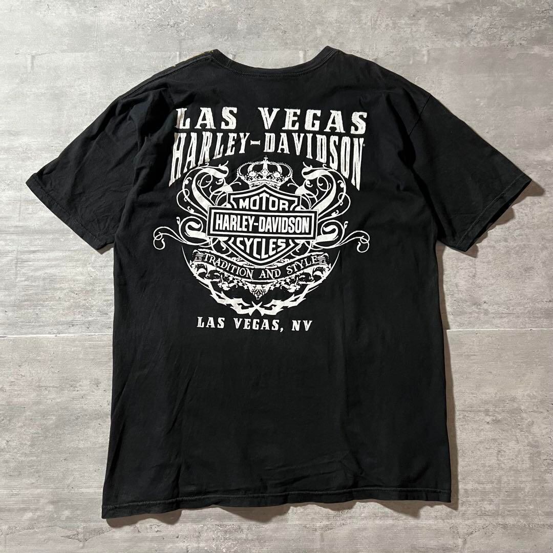 ハーレーダビッドソン 両面スカル プリントTシャツ ストリート 雰囲気系