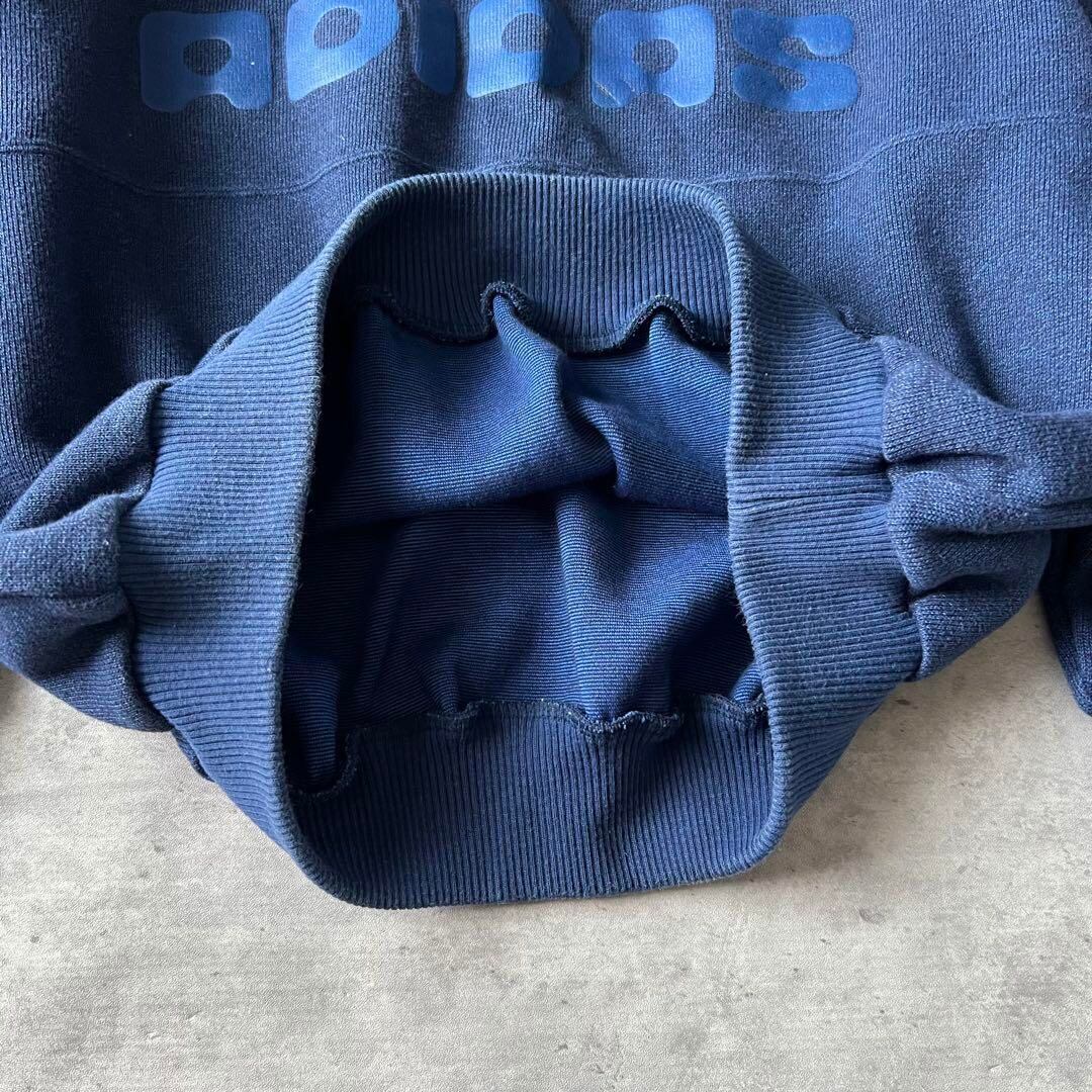 90年代デサント製アディダスのスウェット。立体ラバープリントのセンターロゴに、アメフト選手の刺繍が映えるユニークな一着。ネイビーボディにポップな配色がストリート感満載。ゆったりとした丸みあるシルエットも魅力。