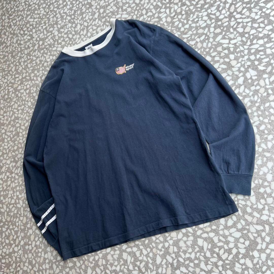 ステューシー 白タグ アメリカ製 ステューシースポーツ リンガー 長袖Tシャツ ストリート