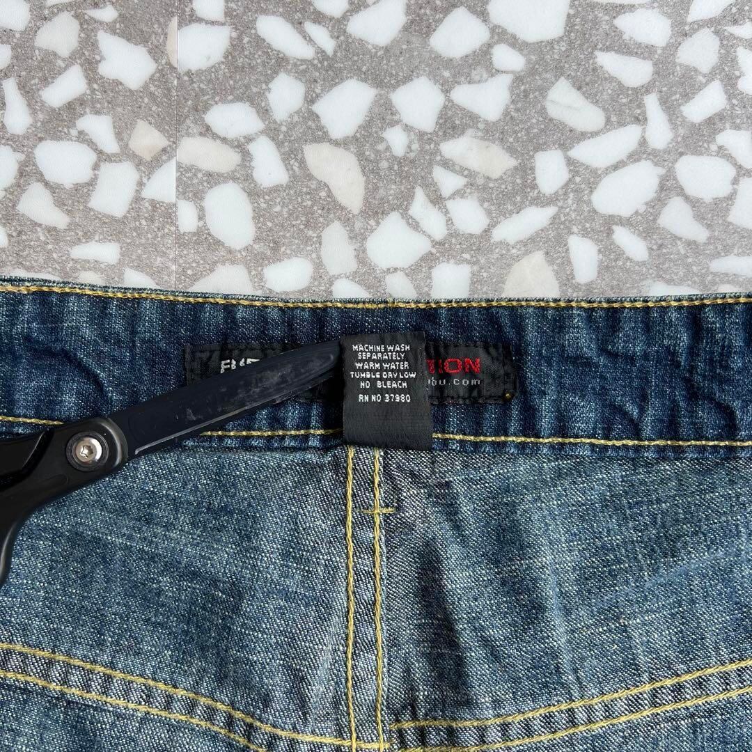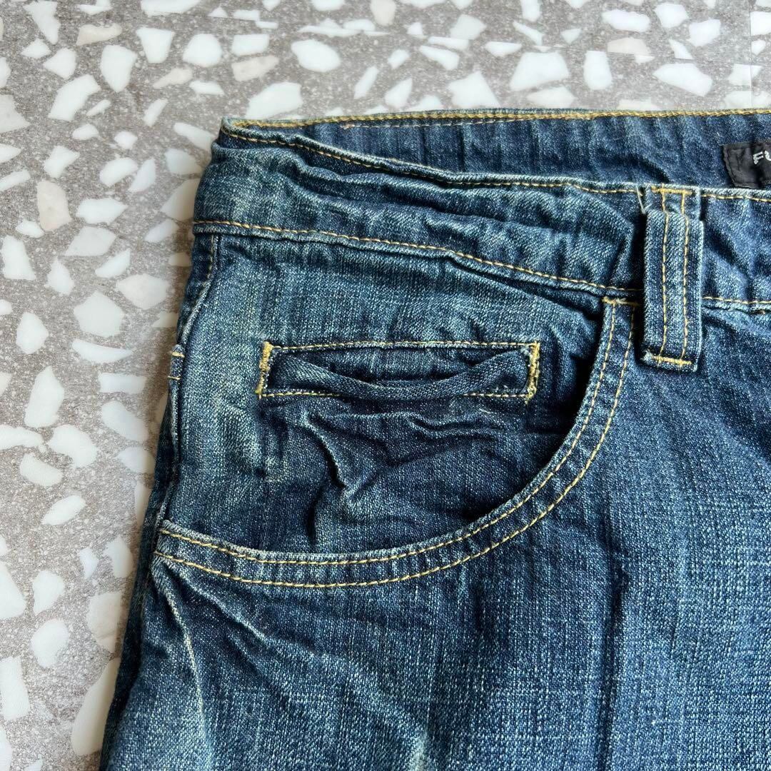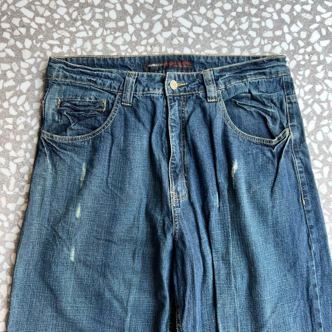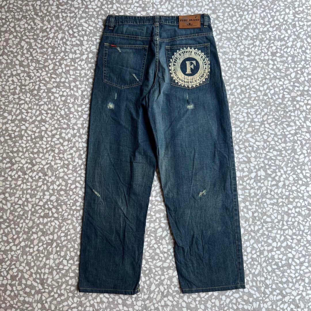 ヒップホップカルチャーを象徴するルーズシルエットのデニムパンツ。バックポケットにはブランドを象徴するビッグな「F」ロゴが大胆にプリントされ、当時のストリートスタイルを色濃く感じさせるデザイン。程よいユーズド加工やダメージ感も相まって、こなれた雰囲気を演出。ワイドでリラックスしたシルエット且つ、生地感もリーバイスのようなデニムと違い、若干柔らかめになっておりその辺もお勧めポイントです‼︎