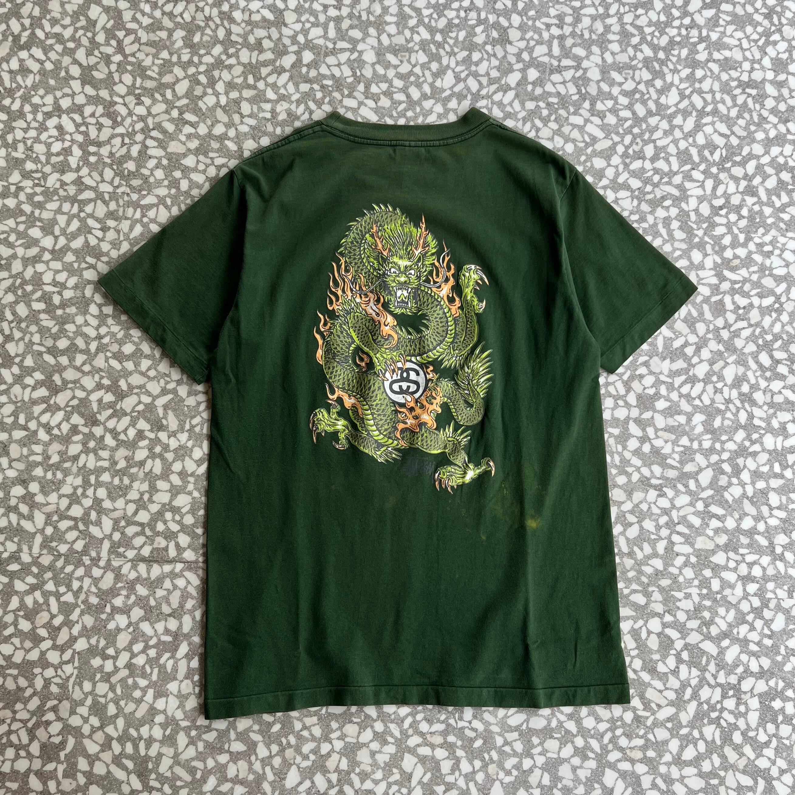 ブートステューシー ドラゴンバックプリントTシャツ ストリート グッドダメージ