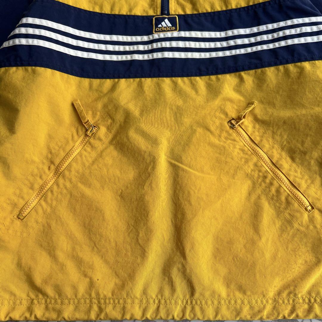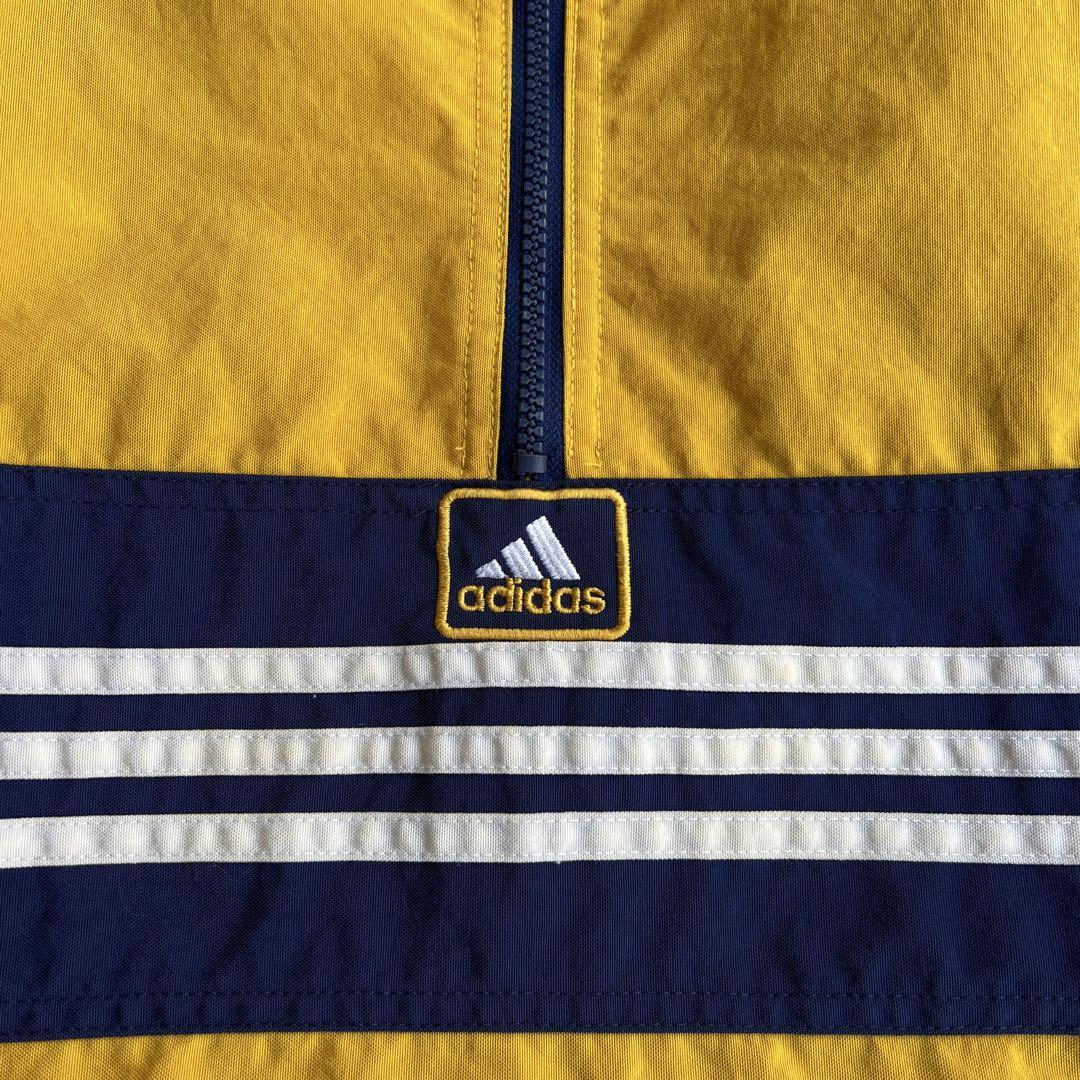 オールドアディダス ハーフジップ ナイロンジャケット 刺繍ロゴ ストリート ドローコード