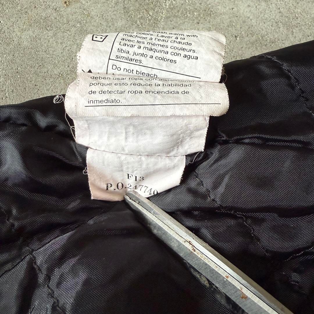 ネイビーのシンプルなボディに、胸ポケット横のブランドパッチが映える定番デザイン。内側は中綿キルティング仕様で防寒性も高く、タフな生地感と合わせてヘビーデューティーな一着です。