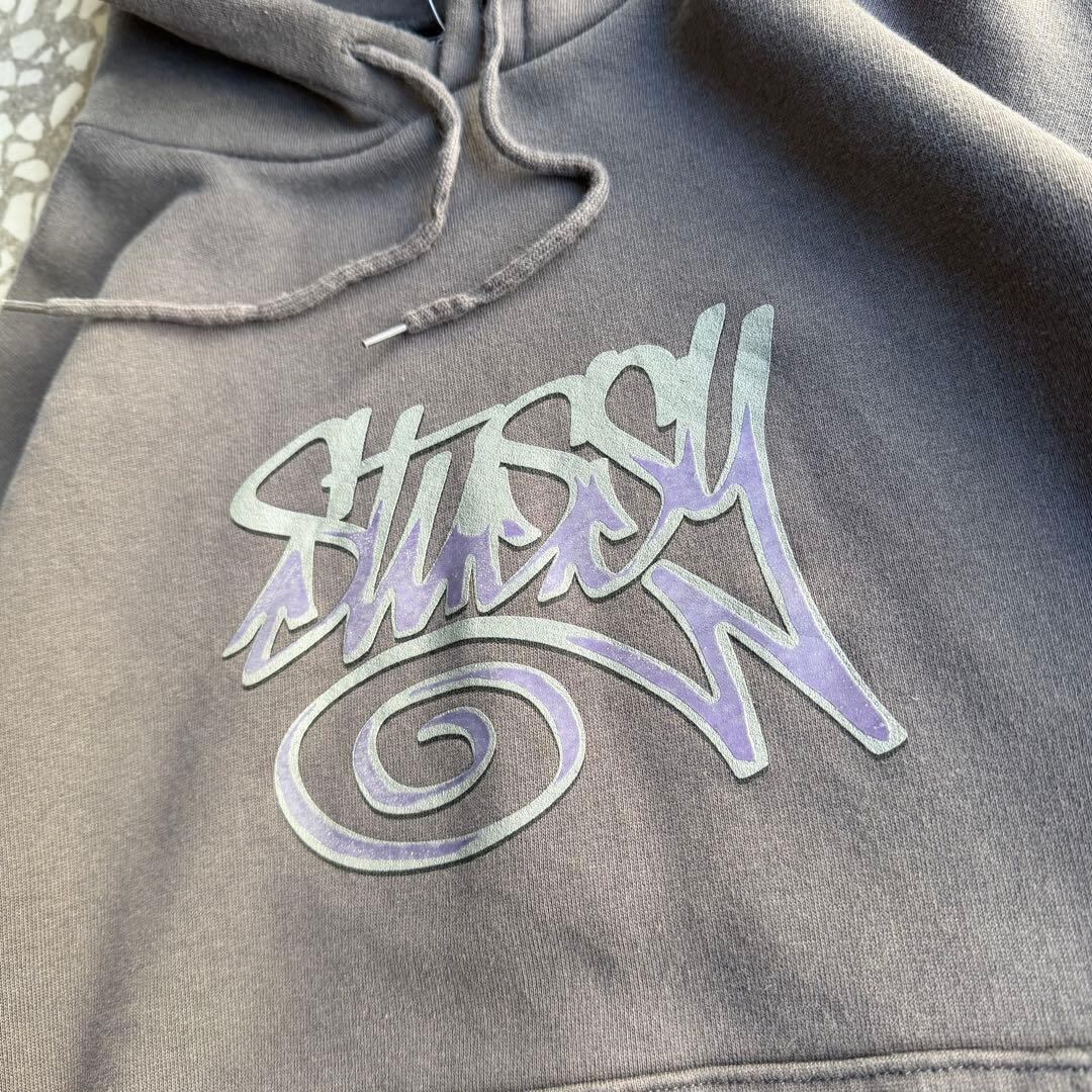 オールドステューシー ビッグロゴプリント 肉厚パーカー ストリート 裏起毛 変形文字
