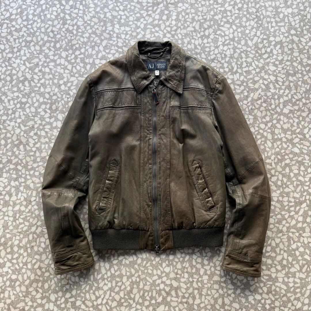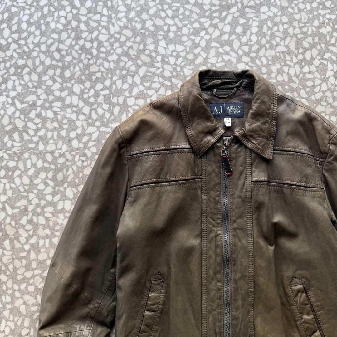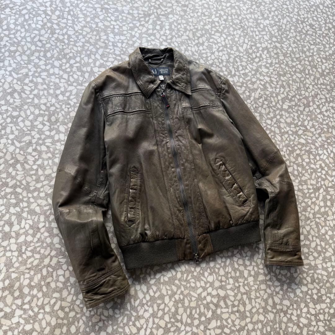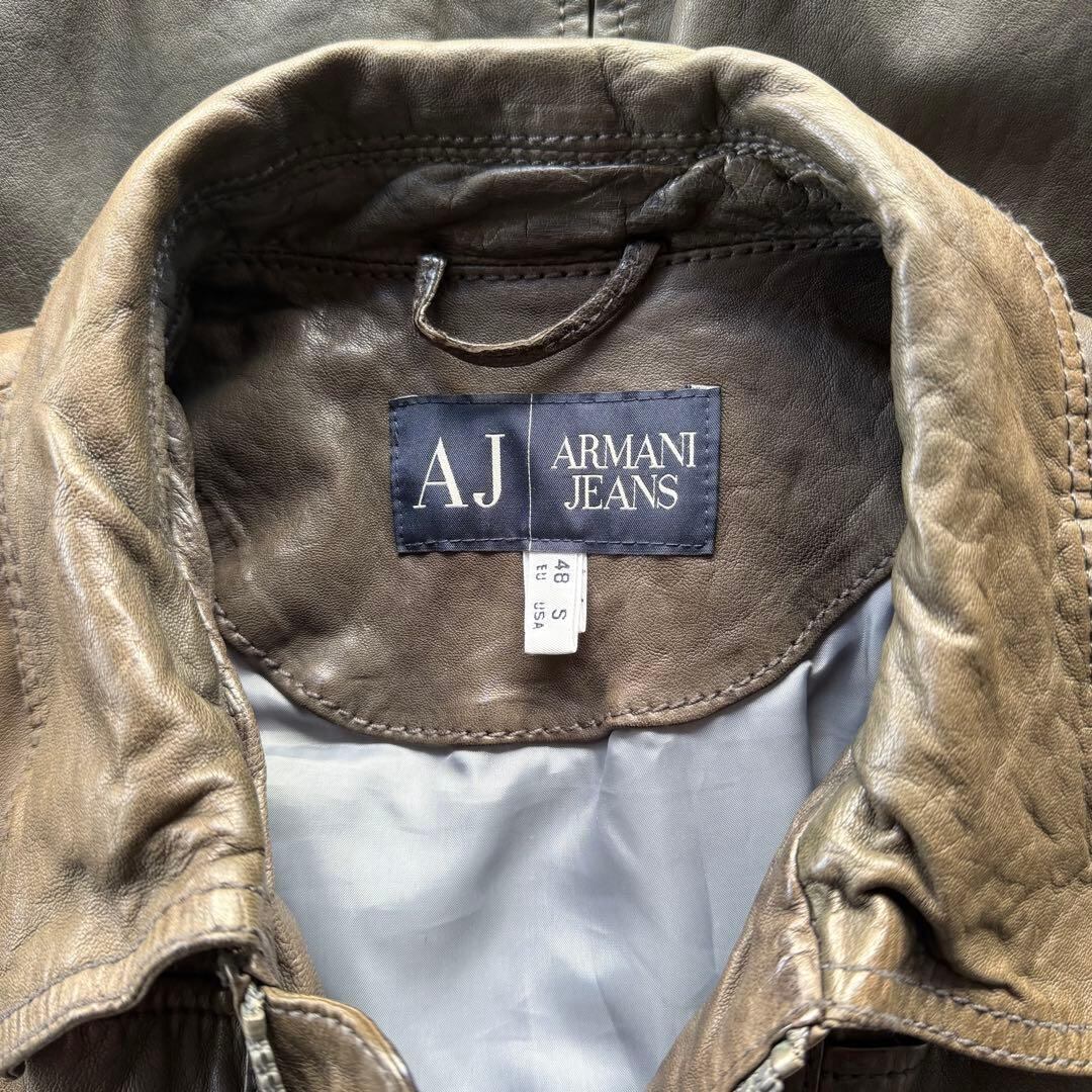 アルマーニジーンズ ラムレザー ライダースジャケット アーカイブ シングル