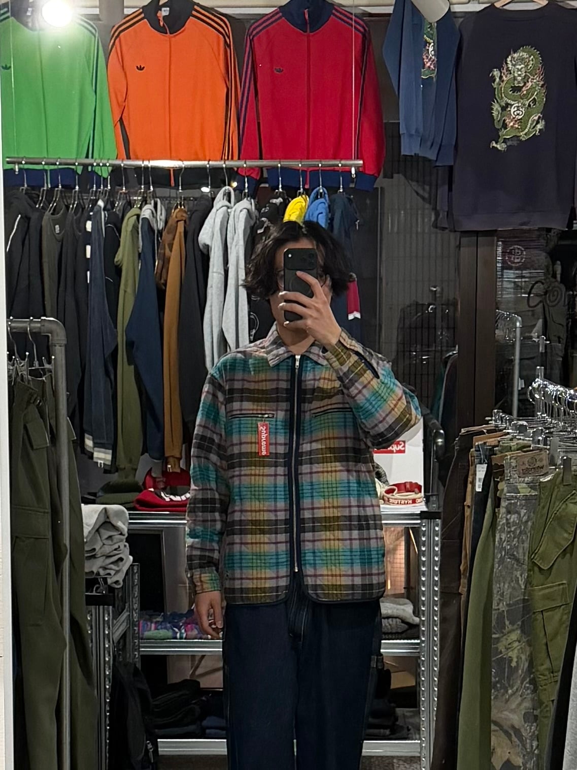 シュプリーム マルチカラー チェック ジップジャケット スター刺繍 ストリート