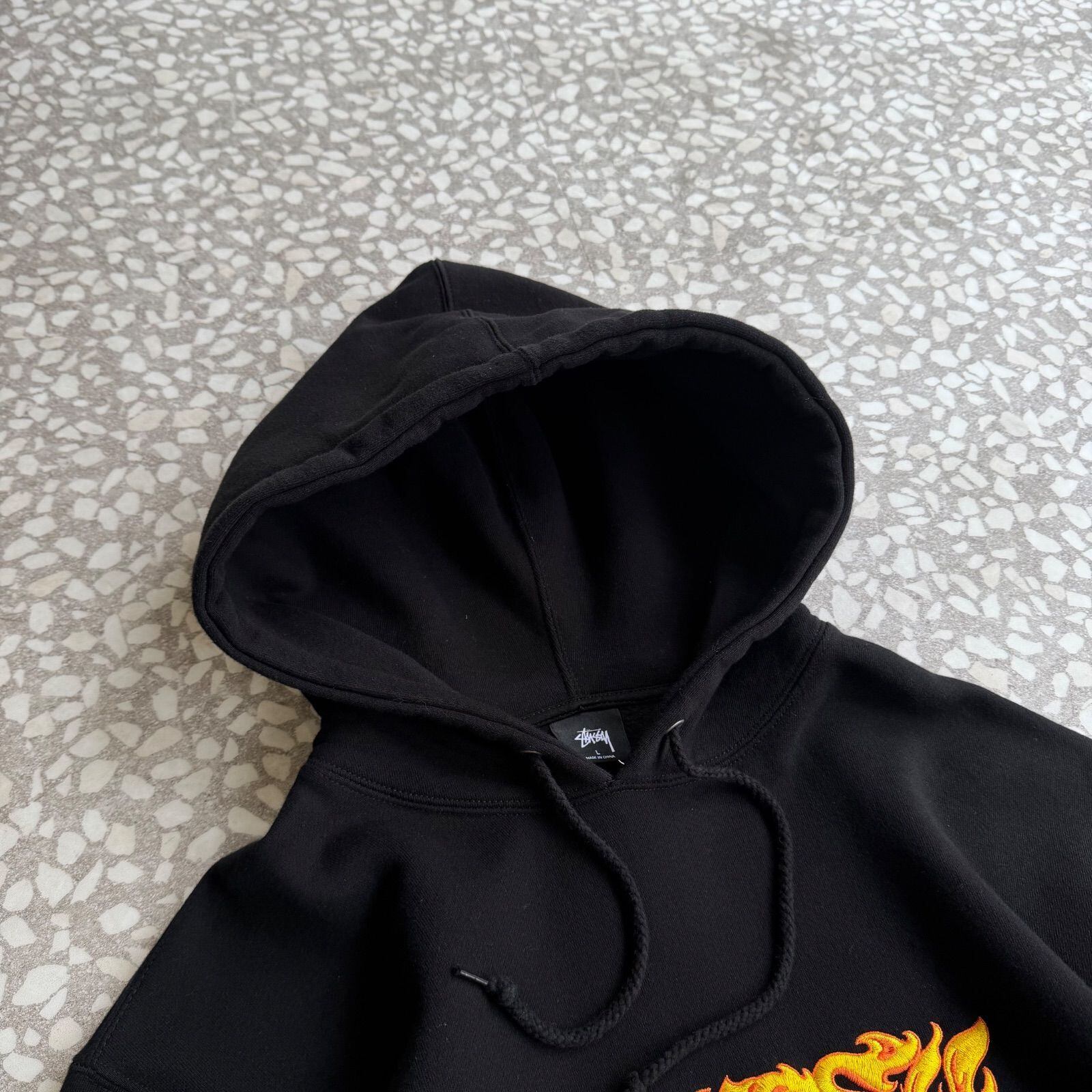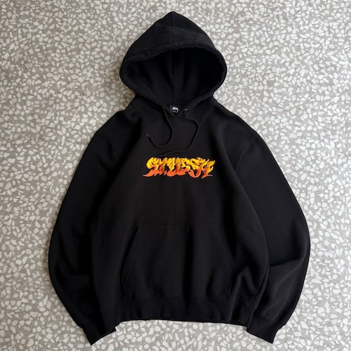 ステューシー 炎 刺繍ロゴ パーカー 肉厚裏起毛 ストリート