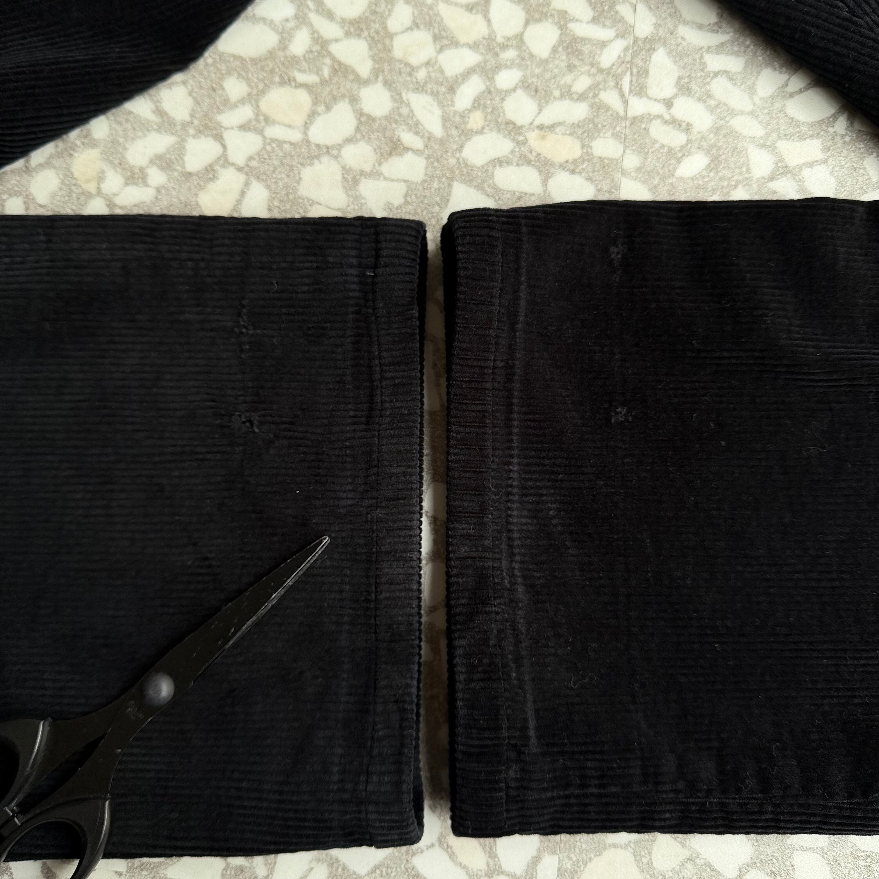 前面、両裾にダメージ