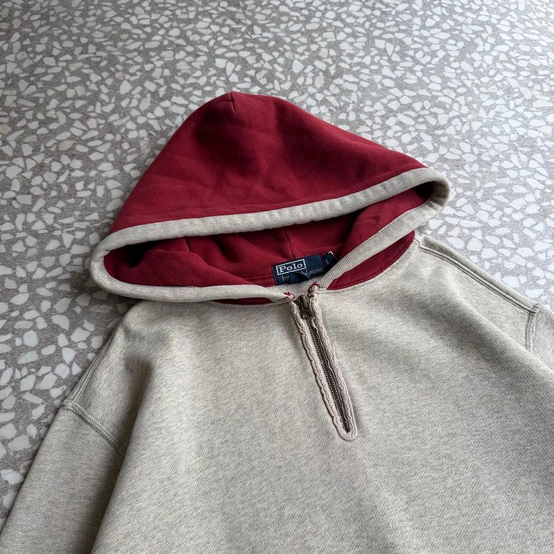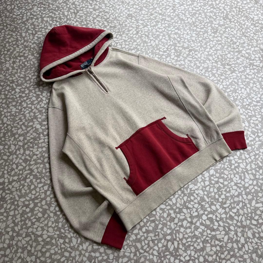 Polo by Ralph Lauren / 90′s- 2tone half zip hoodie size L