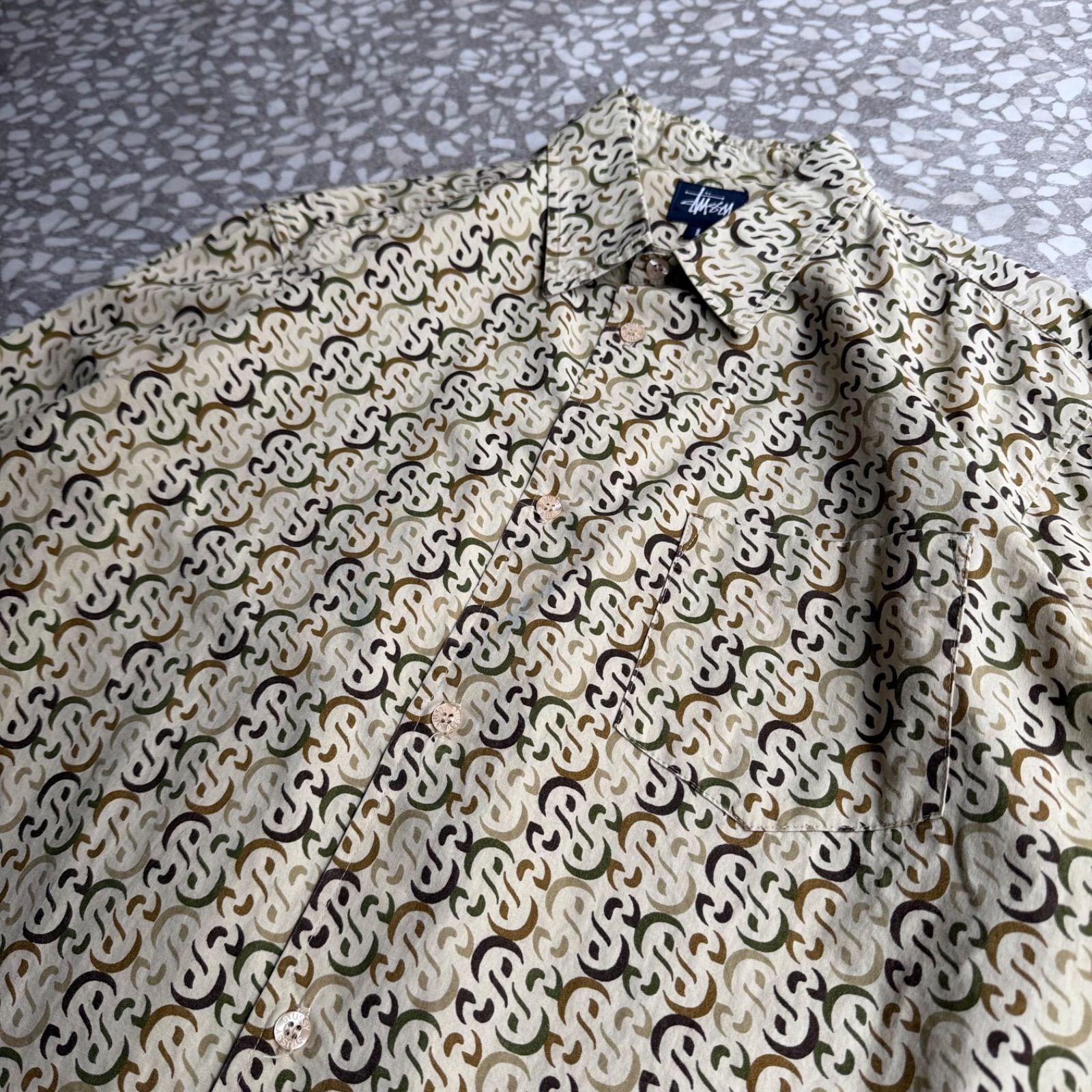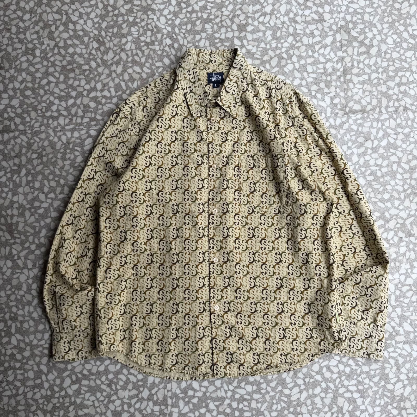 オールドステューシー アメリカ製 総柄SSロゴ 長袖シャツ ストリート