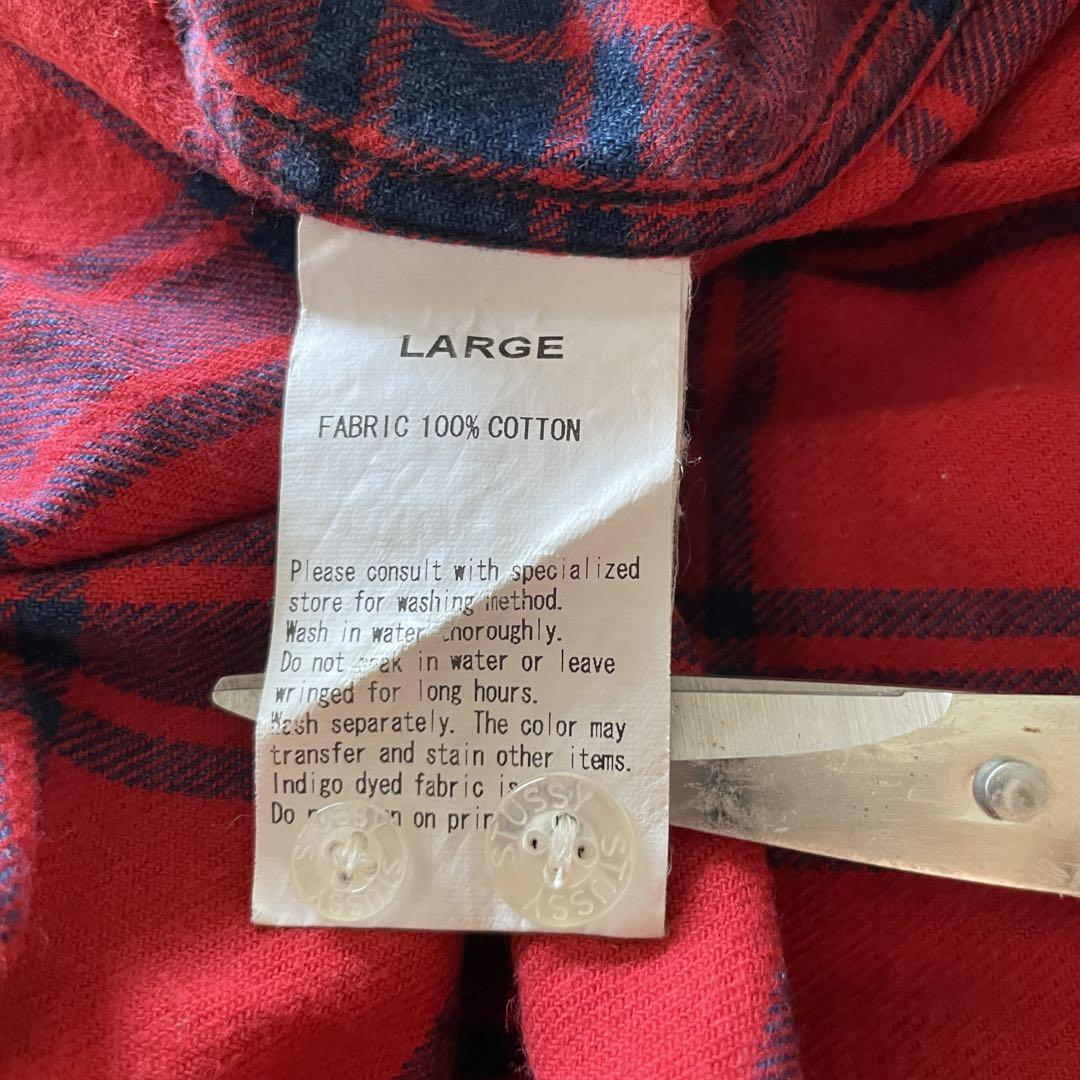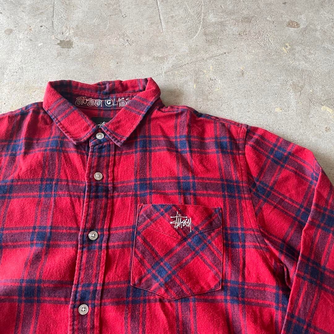 STUSSYのレッドネルシャツです。 胸ポケットに白い刺繍のロゴがあります。