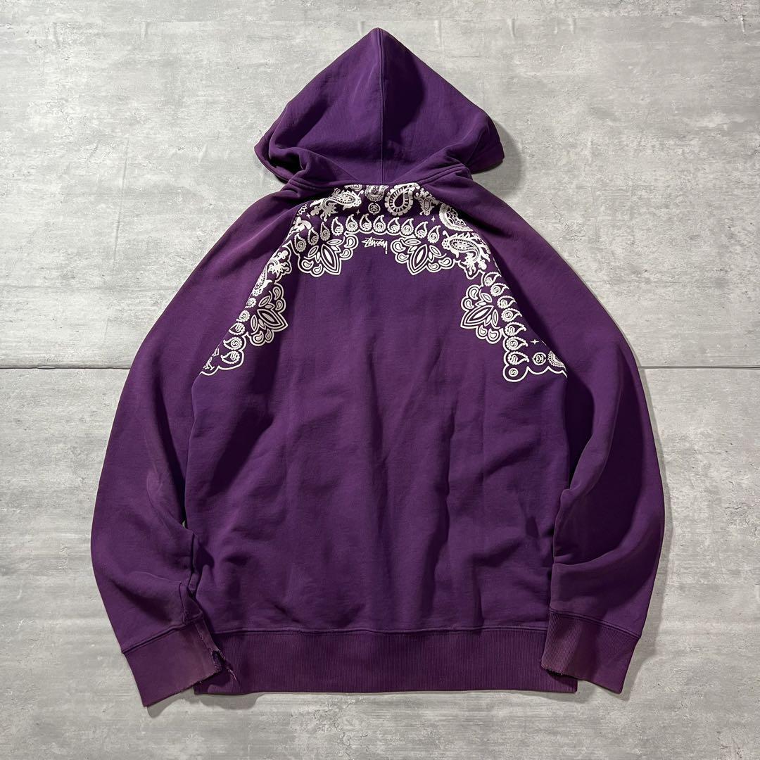 ステューシー ペイズリー柄 ジップパーカー フロントポケット